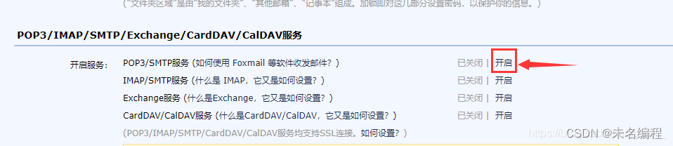 第三步在這個頁面找到下圖這個位置,在POP/SMTP服務(wù)哪一行,點擊開啟,這個時候你會看到一個彈框,按照里邊的要求,發(fā)一封短信,此時你會看見一串字符,這個就是你的授權(quán)碼。