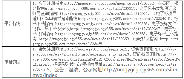 | 附件:設備清單 (2)投標人資格要求 本次招標要求投標人須具備以下資質,人員、設備、資金等方面具有相應的能力: ①須在工商行政管理部門辦理登記注冊(具有有效營業(yè)執(zhí)照); ②所供貨物均須提供產品合格證,電器類產品須提供“3C”認證證書。 ③所有資質文件、報告等真實有效,不得出現(xiàn)偽造、涂改、借用等情形。 ④履行合同所必需的設備和專業(yè)技術能力及專業(yè)技術人員; ⑤投標設備必須滿足招標人的設備參數(shù)要求,需要提供投標設備型號品牌、各模塊性能參數(shù)、尺寸等材料和設備正面、側面、背面、平視俯視等角度彩照; ⑥具有良好的銀行資信、商業(yè)信譽和履行合同的能力,提供財務報告或銀行資信證明; ⑦在最近三年內沒有騙取中標和嚴重違約等問題,可提供承諾書或法人在“國家企業(yè)信用信息公示系統(tǒng)”和“中國裁判文書”網(wǎng)無不良記錄的打印頁; ⑧單位負責人為同一人或者存在直接控股、管理關系的不同供應商,不得參加同一合同項下的采購活動;與采購人存在利害關系可能影響采購公正性的法人、其他組織,不得參加競標; ⑨不接受聯(lián)合體 (3)招標文件的獲取 凡有意參加本項目的潛在投標人,請于2020年8月26日9時至2020年9月2日17時 (北京時間,下同),登錄內蒙古產權交易市場網(wǎng)站“http://www.nmcqjy.com/”進行會員注冊及辦理CA, CA申領方法及平臺操作指南請登錄(http://www.ejy365.com/newlogin)進行學習,在網(wǎng)上購買并下載招標文件。 提示:CA僅用于投標文件的加密和解密,CA申領在供應商系統(tǒng)中即可完成,建議在開標時間前10天以上制作投標文件,請注意在領購招標文件時間內下載招標文件,否則將無法參與本項目,CA售價250元/個,售后不退。 本次項目的澄清/修改/變更/重新招標公告會通過網(wǎng)站發(fā)布,請參加的投標人及時登錄系統(tǒng)查看。 招標文件(僅支持E交易下載領?。┦蹆r500元/標段,售后不退。 賬戶名:內蒙古產權交易中心有限責任公司 開戶行:中國銀行內蒙古自治區(qū)分行營業(yè)部 行號:104191014056 賬號:以下載標書系統(tǒng)彈出通知信息為準 串標行為認定:標書款和保證金的子帳號為隨機生成,參加同一項目的多家供應商的標書款或保證金匯入同一子賬號,視為串標行為。 (4)投標文件的遞交 投標文件遞交的截止時間(投標截止時間,下同)為2020年9月9日9時30分,投標人應在截止時間前通過內蒙古產權交易中心電子(E交易平臺)招標投標交易平臺遞交電子投標文件。 注:逾期送達的投標文件,電子招標投標交易平臺將予以拒收。采用遠程電子開標,投標人無須到達開標現(xiàn)場,可遠程使用CA解密。 (5)付款方式 協(xié)議簽訂之日起5個工作日內,我方向供應商支付貨款總金額的45%作為定金,并于到貨5個工作日內,供應商向我方提供全額形式增值稅普通發(fā)票,再付50%貨款,剩余5%貨款作為質保金,如無質量問題1年后付清。 3.聯(lián)系方式 采購人名稱:內蒙古烏蘭美健康服務集團有限公司 聯(lián) 系 人:姚佳秀 聯(lián)系電話:17604742599 內蒙古產權交易中心有限責任公司 地址:內蒙古呼和浩特市賽罕區(qū)阿吉泰路3號 聯(lián) 系 人: 楊艷 聯(lián)系電話: 18586095937 郵箱:nmcqcg@163.com 技術支持電話:0471-3473040(報名、標書下載上傳等)/0471-3473016(CA申請) |