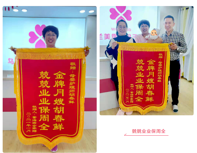 手捧錦旗的胡春鮮動容的說:“這本就是我的分內(nèi)工作,是因?yàn)?lsquo;米勒媽媽’(寶媽)的活潑開朗,讓我們相處的更加融洽,也讓我的工作更好的開展!與此同時更要感謝烏蘭美醫(yī)養(yǎng)月子中心給我提供了事業(yè)發(fā)展的平臺,感謝我的每一位老師對我的幫助和指導(dǎo),感謝大家給予我家一般的關(guān)懷和溫暖”。