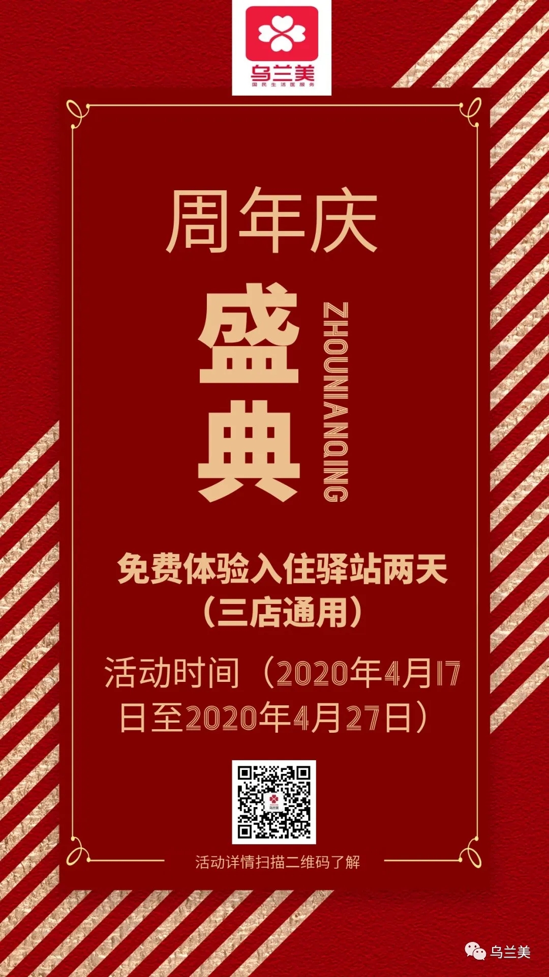 【周年鉅惠】烏蘭美養(yǎng)老驛站(中心醫(yī)院店)一歲啦!特大福利震撼來襲~發(fā)布時(shí)間: 2020-04-16 -